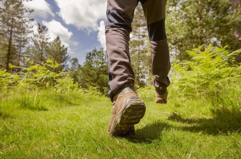 When carrying a heavy load, resist the urge to take longer strides, as this can place excessive strain on your hip flexors and lead to fatigue or injury. Instead, adopt a technique of taking shorter, more efficient steps, particularly on steep or uneven terrain. Short steps allow you to maintain better control and balance, reducing the strain on your legs and core. This approach helps in managing the load more effectively, ensuring a steadier and more sustainable pace throughout your hike. When taking shorter strides going uphill, engaging your glutes will also help reduce the strain on the rest of your legs.
